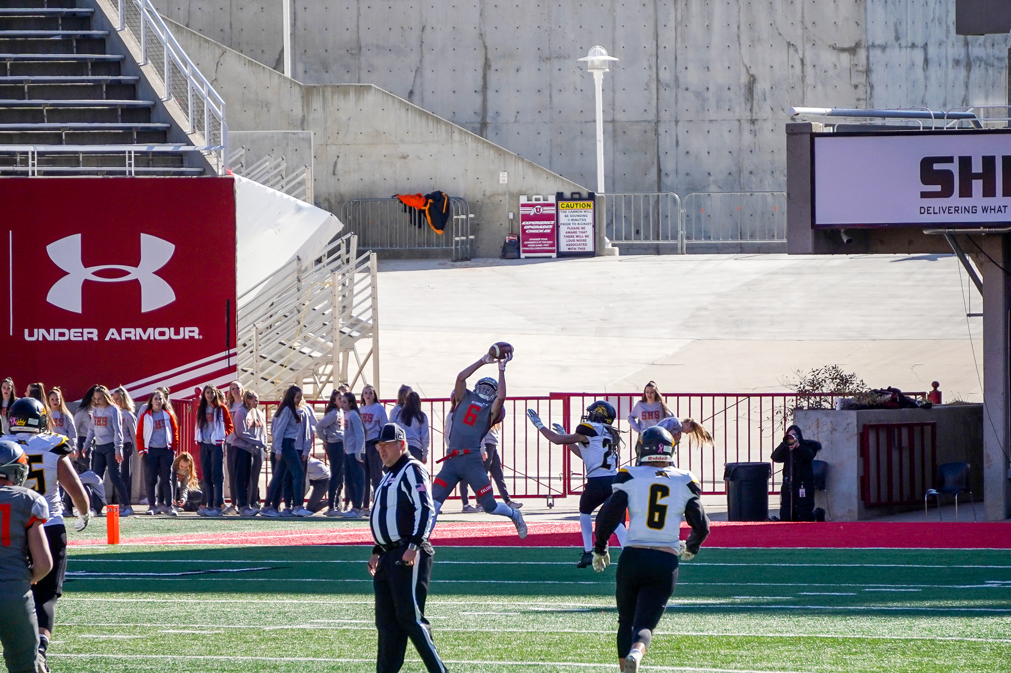 Skyridge Head Coach, Jon Lehman said, ” It just takes a belief in each other. Things are going to happen, you’re going to get pushed in games and you have to trust the game plan and you have to keep playing and keep executing.” The Falcons had near perfect execution as they played hard and well the entire game. Lehman also said, “We had a good week of preparation. The team focused and worked together. Assistant Coach Lira worked hard on our game plan and strategy.” The Falcon’s strategy and play-calling was key in their offensive domination and their response on defense shut down the Royals’ ability to make big plays.
