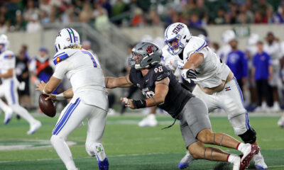 Former Lehi standout Isaac Terrell suits up for the Cougars at defensive end and was able to do something on Saturday he was never allowed to do in high school – go after Brousseau. He finished with one solo and two assisted tackles in the contest.