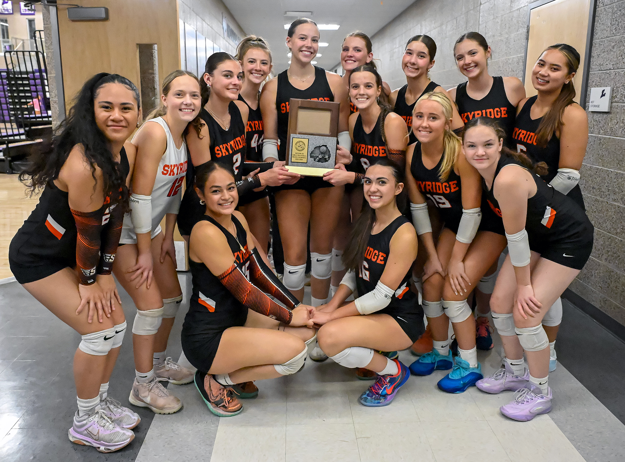 The No. 1 Skyridge girls volleyball team wrapped up the Region 3 championship with a victory in their final contest for a 7-1 record. They finished out the regular season with a nonleague win to end with a 24-2 overall mark.