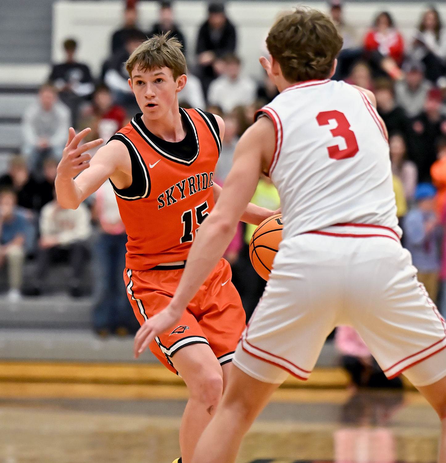 Senior 6-3 wing Zach Gagon “is our best defender and has continued to improve his offensive abilities,” Coach Gardner said. “He can score at all three levels and he does all the little things on the court. He is a great rebounder and passer and also a great leader.”