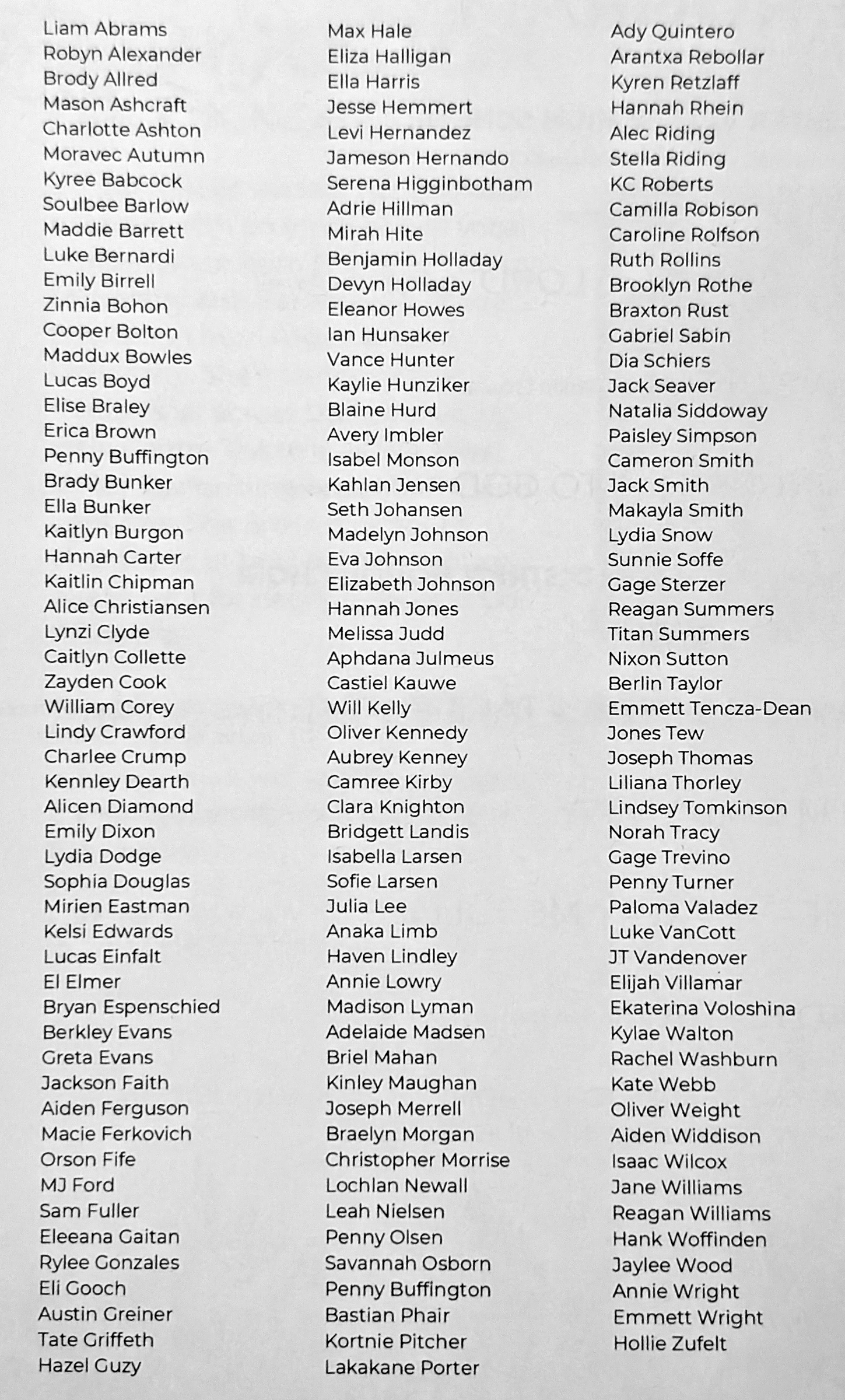 Students from 11 schools participated in the program. They included Lehi Junior High under director Jill Smith, Viewpoint Middle School under director Alan Larson, American Fork Junior High under director Matthew Thornton and Mountain Ridge Junior High under director Rebekah Lindsley.