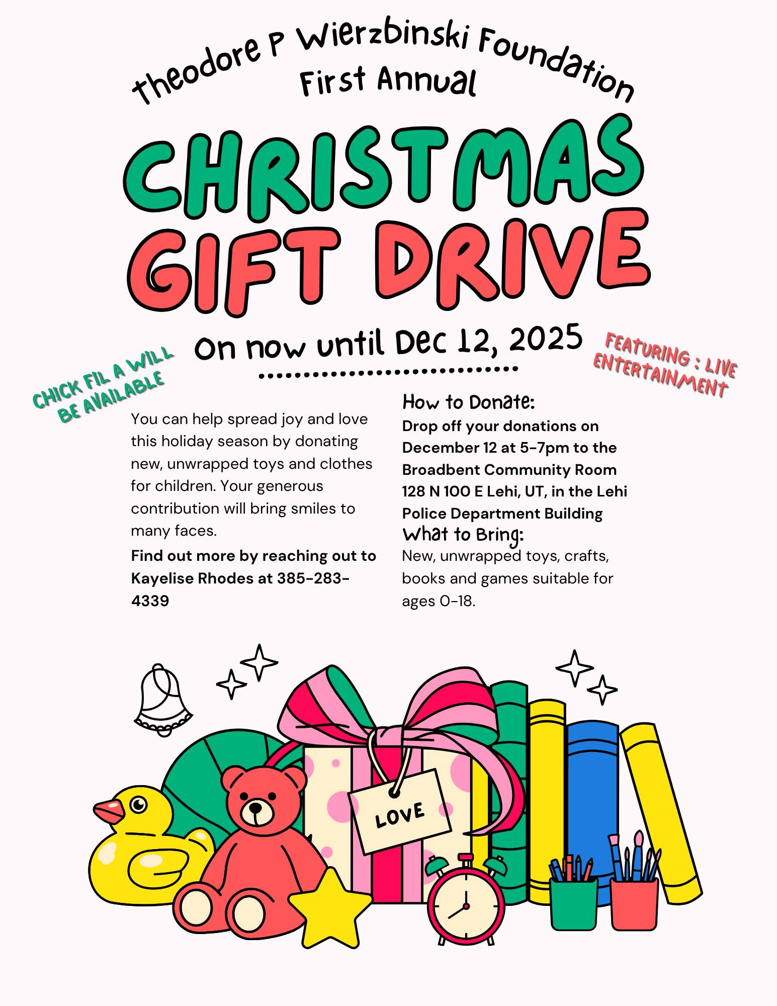 For those who’d like to donate to the drive, they can attend the event on Dec. 12 or contact Rhodes directly at 385-283-4339. They are accepting new, unwrapped gifts suitable for children ages 0-18.