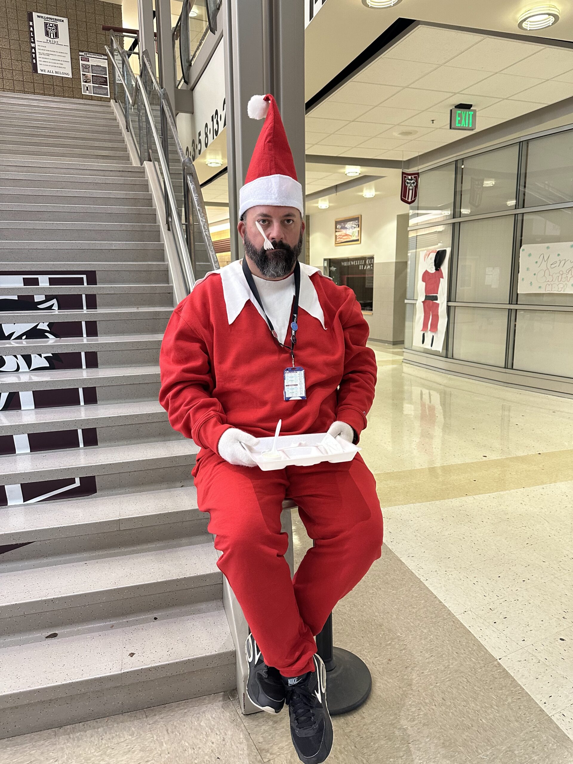 The “Elf on the Shelf” tradition, involves a mischievous elf sent from the North Pole to watch children carefully before Christmas while showing up in a different place each morning (as long as parents remember). The elf encourages good behavior while creating fun, sometimes elaborate scenarios for families. The spirit of this tradition endures at Willowcreek Middle School, thanks to the ingenuity of innovative administrators.